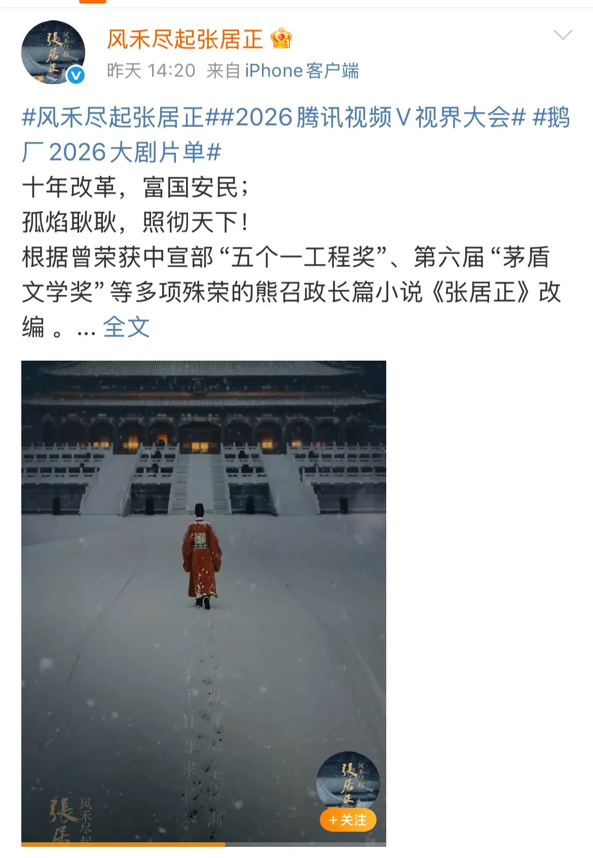 大会结束后,胡歌的《风禾尽起张居正》、杨紫的《玉兰花开君再来》、张若昀的《雪中悍刀行2》、吴磊的《剑来》成为了金主们的热门买股剧前四名。