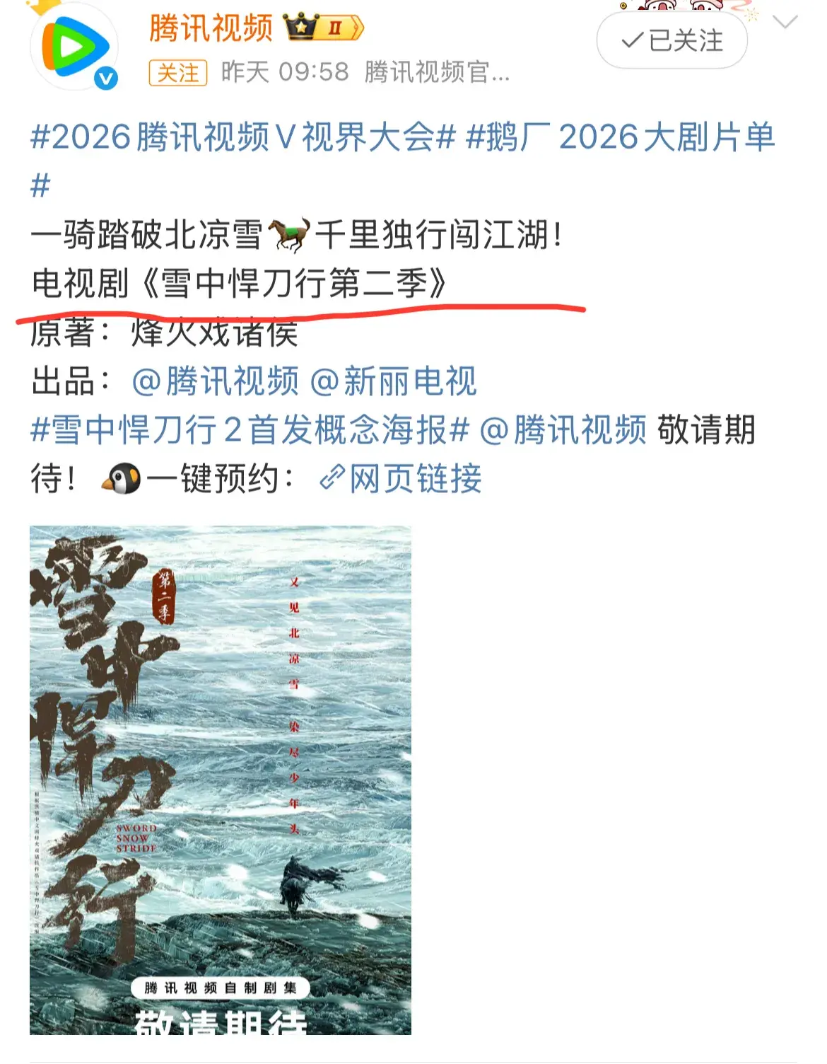 值得一提的是,《雪中悍刀行2》首次官宣开拍,网友们的反应那是异常激动。不少网友直言:等了这么多年,终于等来了。